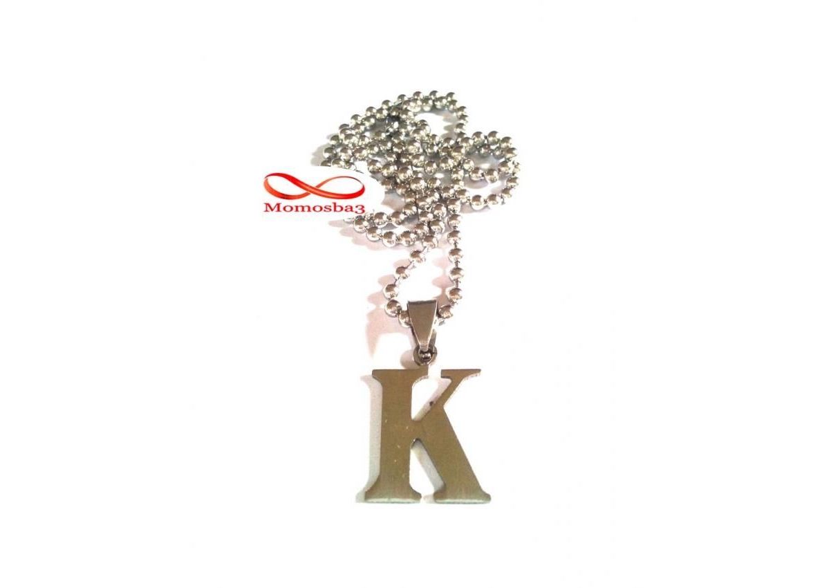 Chaine Maille Boule + Pendentif Caractère K - Acier Inoxydable