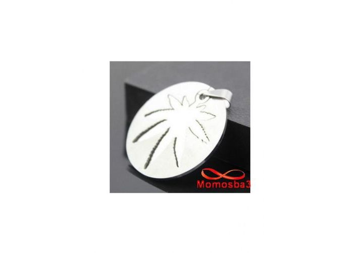 Chaine Maille Boule + Pendentif Marijuana Ganja En Acier Inoxydable Argenté
