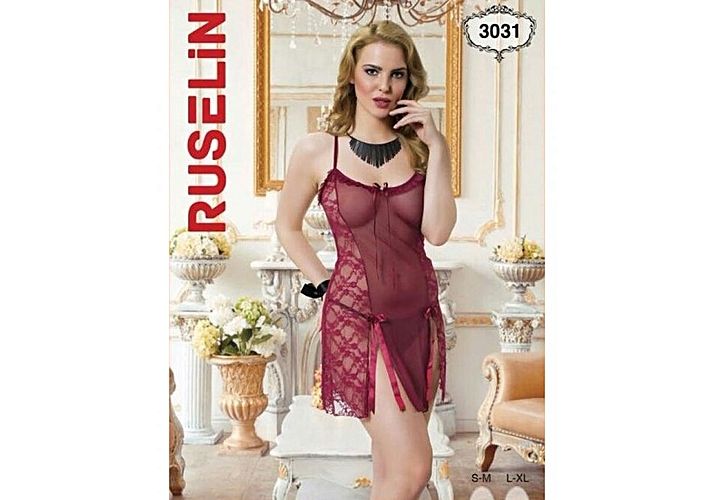 Chemise De Nuit + String - Rouge Foncé