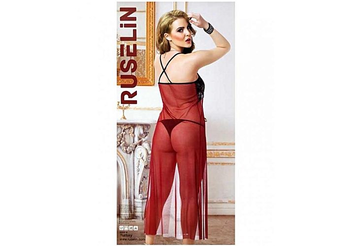 Chemise De Nuit + String Ruselin - Rouge Foncé - Noir