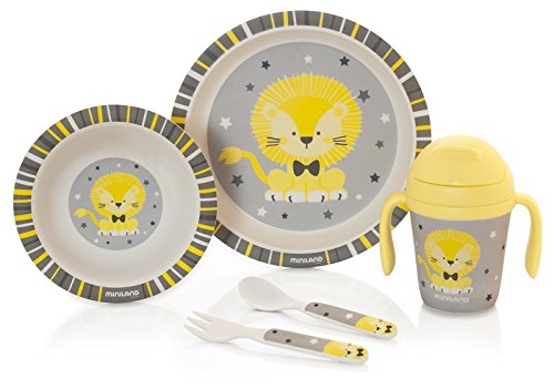 composé d'une assiette, bol, fourchette, cuillère et une tasse d'apprentissage