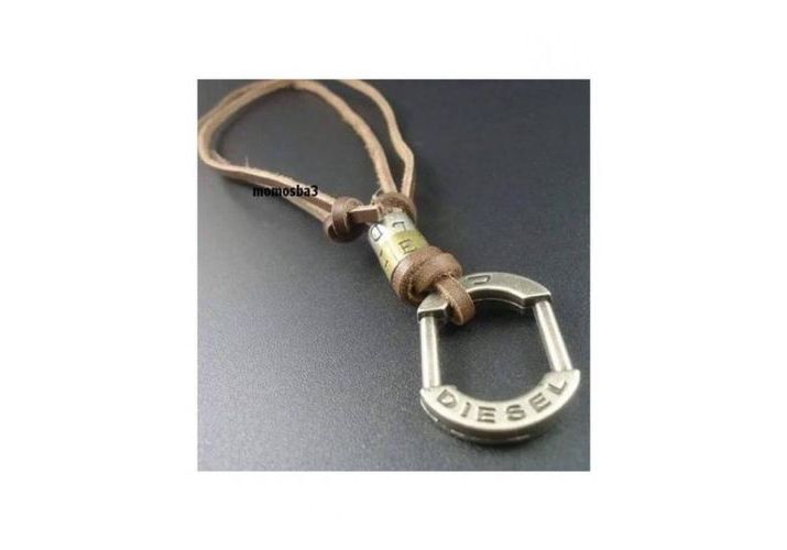 Collier Cuir MARRON Réglable Avec Pendentif DIESEL - Unisex