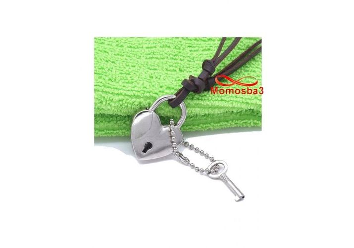 Collier Cuir MARRON Réglable Avec Pendentif Serrure En Forme De Coeur Et Clé - Unisex