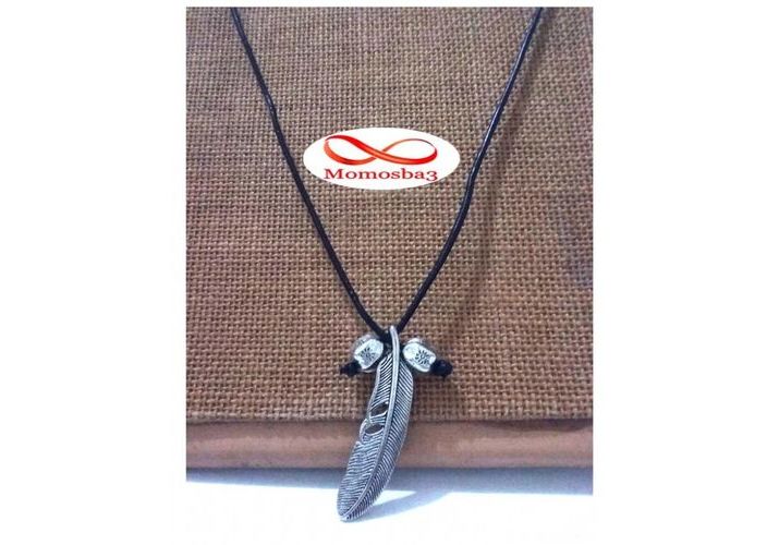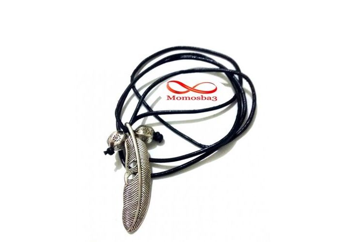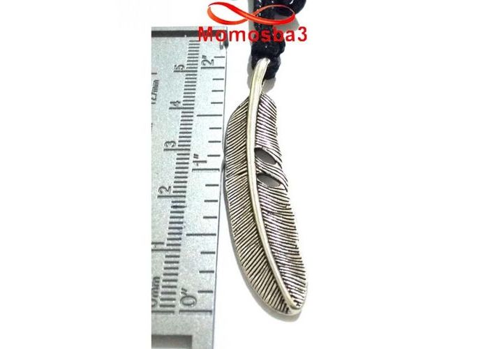 Collier Cuir Noir Réglable Avec Pendentif Plume - Unisex
