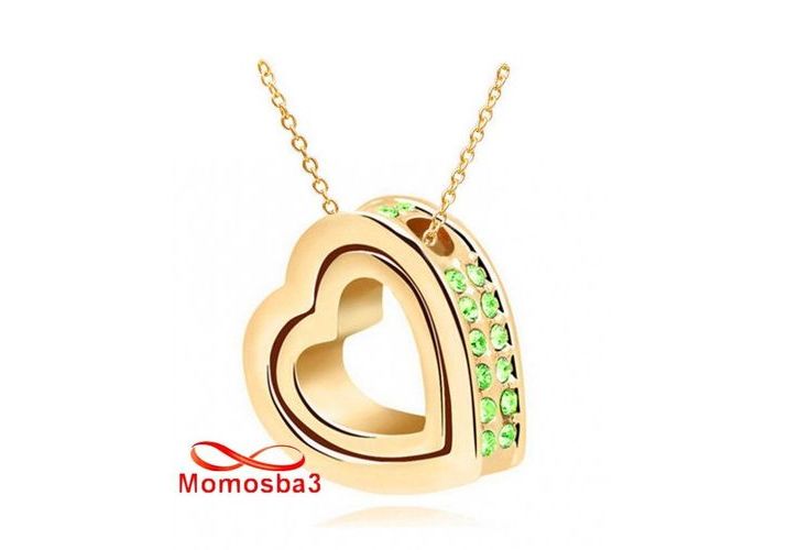 Collier DORE Pendentif Coeur Avec Pierres Cristal vert