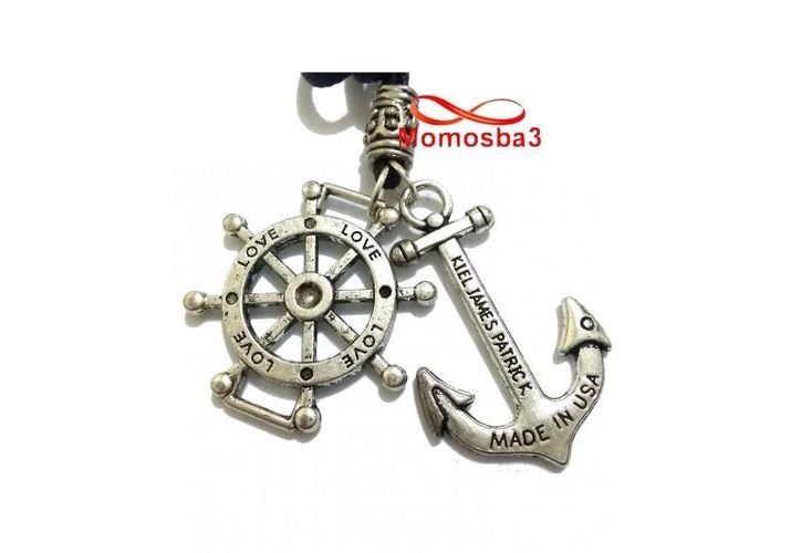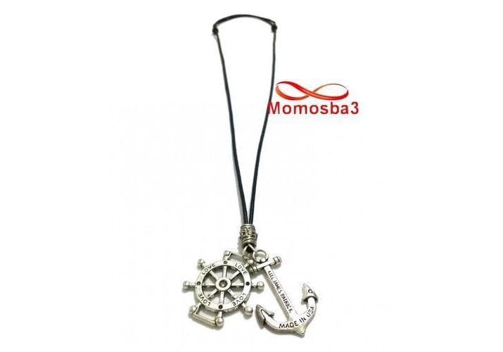 Collier Fil Noir Réglable Avec 2 Pendentif Ancre Marine USA Et Direction Du Navire LOVE (Unisex)