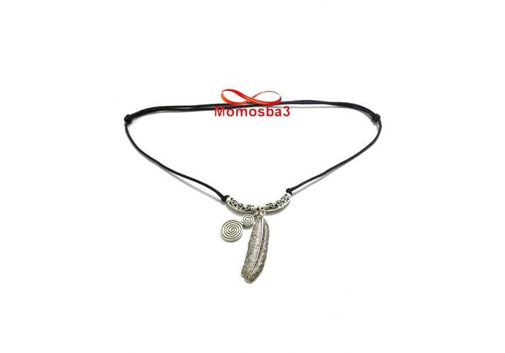 Collier Fil Noir Réglable Avec 2 Pendentifs - Unisex