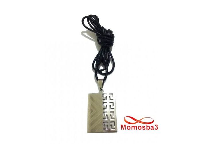 Collier Fil Noir Réglable Avec Pendentif Plaque En Acier Inoxydable Argenté - Unisex