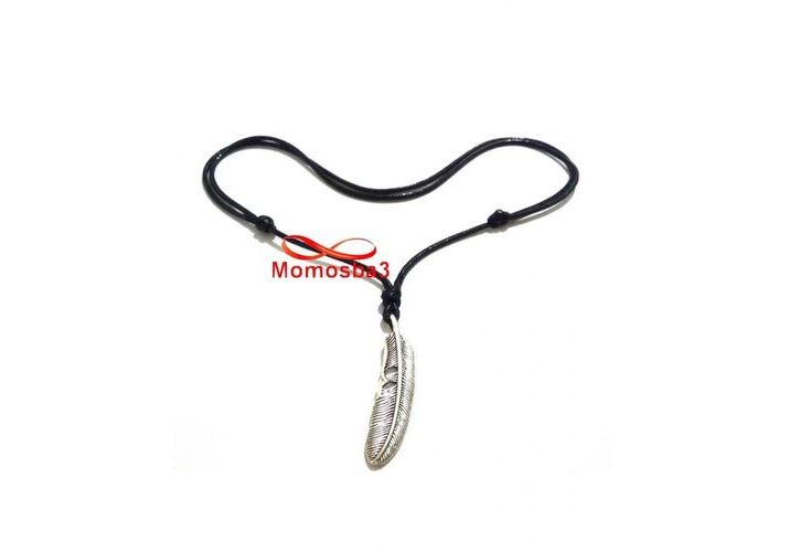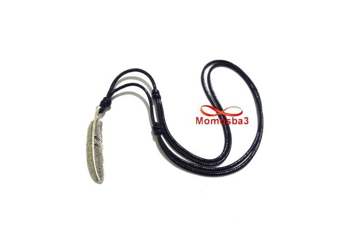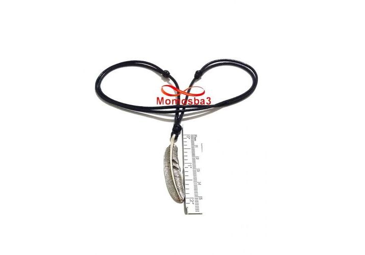 Collier Fil Noir Réglable Avec Pendentif Plume A la Mode - Unisex