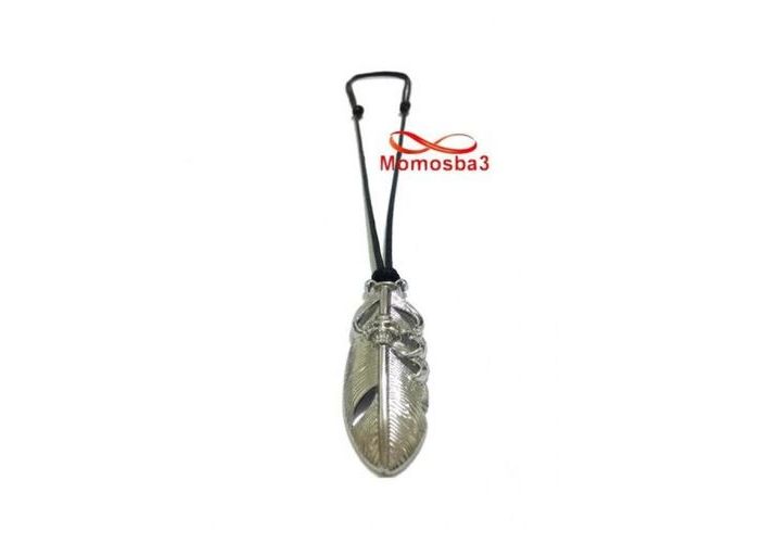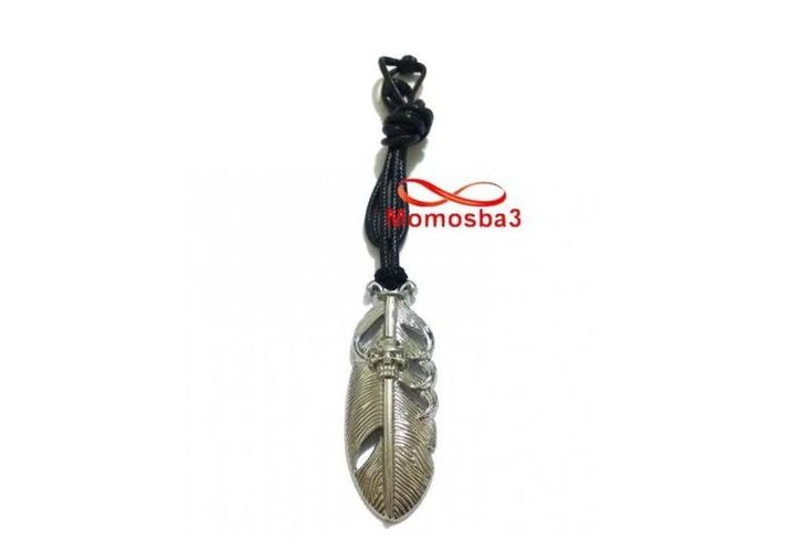 Collier Fil Noir Réglable Avec Pendentif Plume Tete De Mort Argenté - Unisex