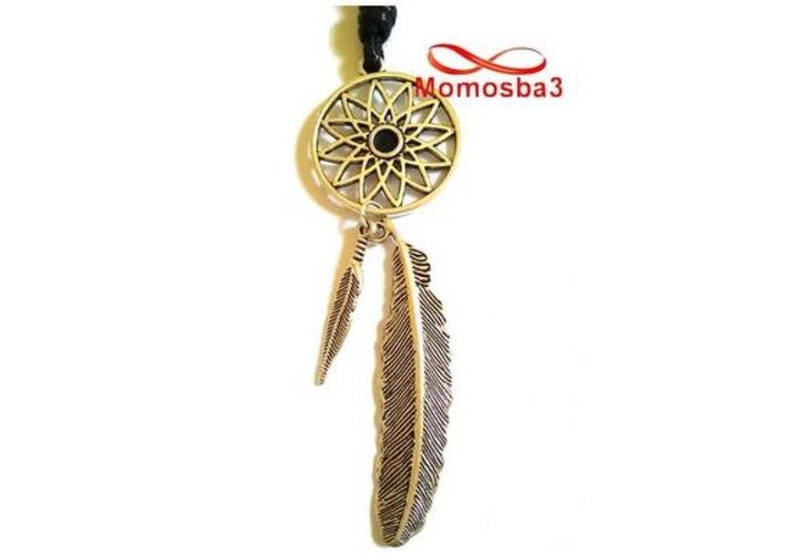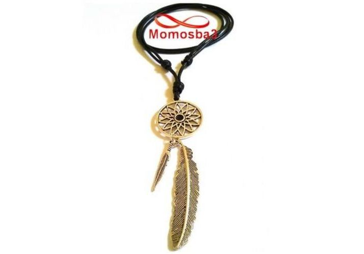 Collier Fil Noir Réglable Avec Pendentif Plume - Unisex