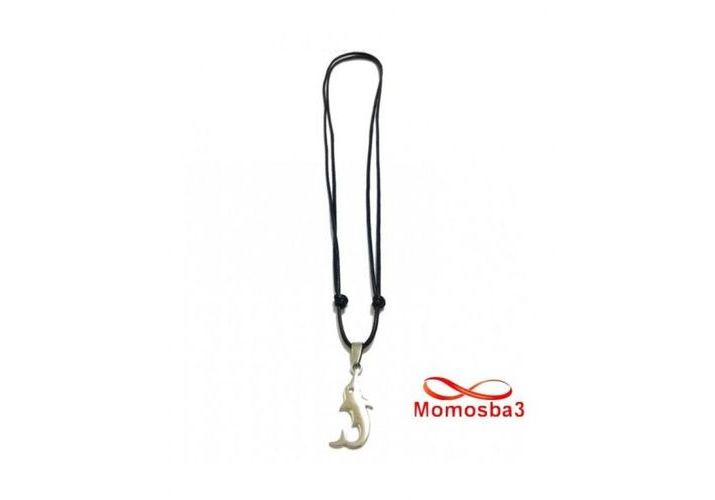 Collier Fil Noir Réglable Avec Pendentif Poisson En Acier Inoxydable Argenté - Unisex