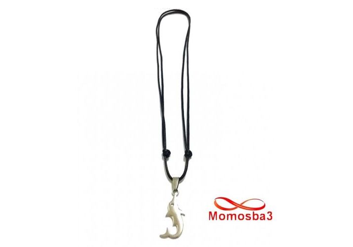 Collier Fil Noir Réglable Avec Pendentif Poisson En Acier Inoxydable Argenté - Unisex
