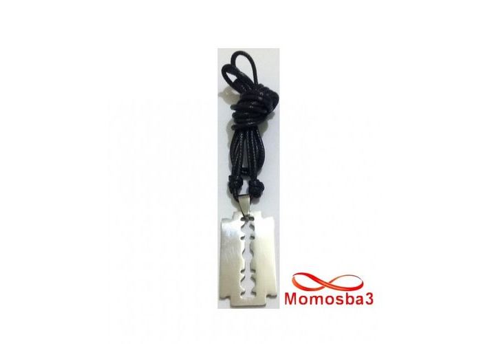 Collier Fil Noir Réglable Avec Pendentif Rasoir En Acier Inoxydable Argenté - Unisex