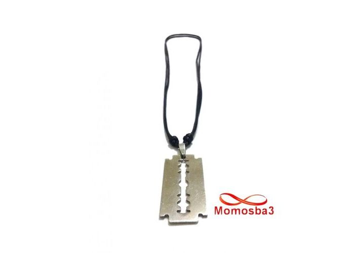 Collier Fil Noir Réglable Avec Pendentif Rasoir En Acier Inoxydable Argenté - Unisex