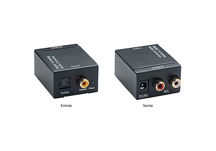Convertisseur audio SPDIF numérique - analogique Convertissez le signal numérique optique (SPDIF ou coaxial) en un signal analogique (2x RCA).