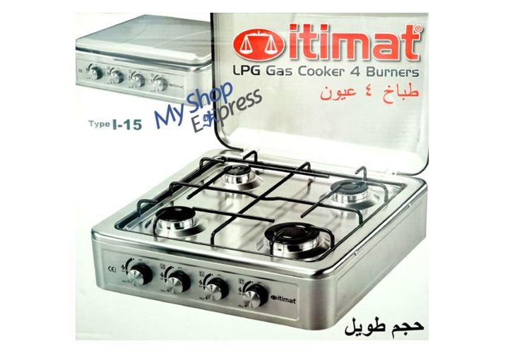 ITIMAT Cuisinière I-15 Plaque de cuisson Haute Qualite à gaz 4 Brûleurs INOX GRIS