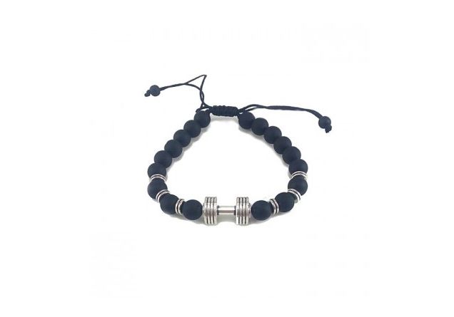 Diamant D'or Bracelet À Perles Avec Barbell Haltère - Noir Matte + Boite Cadeau