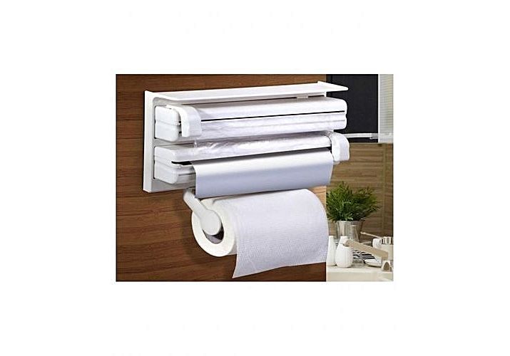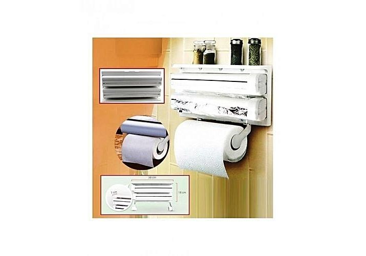 Le distributeur de rouleau de cuisine 3 en 1 est utile d'avoir dans votre cuisine. Il contient des films en plastique, des rouleaux de papier et des feuilles d'aluminium et les met à disposition instantanément sans avoir à le retrouver dans la maison. Il a un corps en plastique ABS compact et peut être monté sur le mur avec des vis. Les coupeurs avec roues à roulettes à roulement doux dans chaque compartiment recèlent des feuilles d'aluminium et des films plastiques sans problème. Plus besoin d'utiliser des couteaux et des ciseaux à des fins d'emballage !! La partie supérieure peut être utilisée comme étagère pour conserver les petits récipients pour aliments. Les coupeurs dans chaque compartiment coupent avec une glissière unique avec des roues de roulement lisses. Mécanisme de chargement avant avec support de rouleau de papier réglable pour tenir des rouleaux de papier tissu de différentes tailles. Facile à monter et simple à utiliser. une paire de supports de papier à papier, 2 curseurs avec roues à rouleaux avec des diagrammes d'installation sur la boîte.
