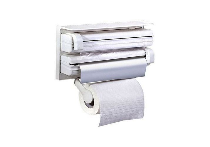 Le distributeur et le support Triple Roll de la cuisine est un utilitaire de cuisine essentiel pour chaque ménage. Détient et range des rouleaux de papier de cuisine, des feuilles d'aluminium et des films en plastique et / ou se vendent dans une seule pièce. Pas besoin de ciseaux ou de couteaux pour l'emballage d'aliments et autres articles de cuisine. Les coupeurs dans chaque compartiment coupent avec une glissière unique avec des roues de roulement lisses. Mécanisme de chargement avant avec support de rouleau de papier réglable pour tenir des rouleaux de papier tissu de différentes tailles. Facile à monter et simple à utiliser. une paire de supports de papier à papier, 2 curseurs avec roues à rouleaux avec des diagrammes d'installation sur la boîte. Feuilles en aluminium et film en plastique / Film adhésif et les dispense dans une seule unité. curseurs avec roues à rouleaux avec des diagrammes d'installation sur la boîte. Feuilles en aluminium et film en plastique / Film adhésif et les dispense dans une seule unité. Pas besoin de ciseaux ou de couteaux pour l'emballage d'aliments et autres articles de cuisine.