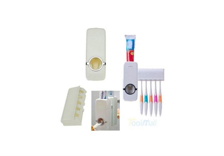 Distributeur de dentifrice automatique & support pour brosses à dents (Peut contenir jusqu'à 5 brosses). Maintient votre salle de bain propre et bien rangée et est compatible avec toutes les marques de dentifrice.