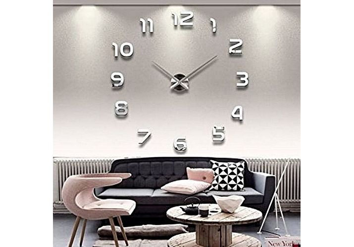 DIY Grande Horloge Murale Design 3D 1,20m - Silver MZ.LUX