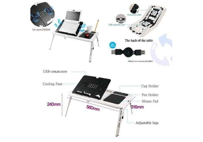 Ajoutez un attrait fonctionnel à votre espace de travail grâce à la table pour ordinateur portable. Il est construit en plastique ce qui le rend robuste et durable. La hauteur est réglable, ce qui vous permet de le personnaliser à votre taille préférée. Il comprend des places qui peuvent être utilisées pour ranger de plus petits objets tels que des stylos, des blocs-notes ou la souris et même un emplacement pour verre d'eau. Il a également un ventilateur de refroidissement qui aidera à garder votre ordinateur portable de surchauffer.