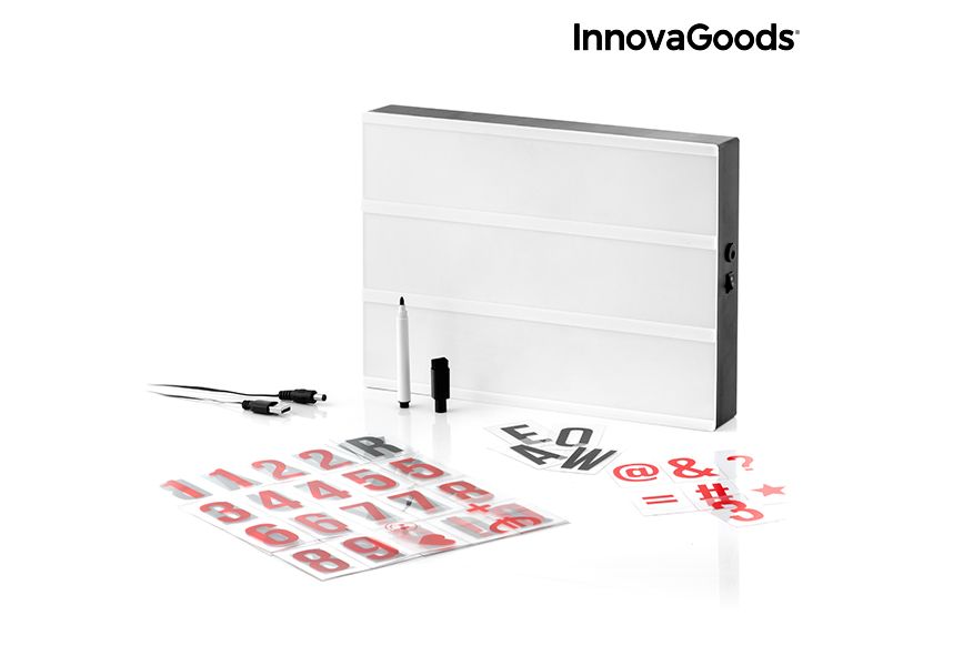 Nous vous présentons le nouvel écran LED pour écrire des messages Cinéma InnovaGoods Gadget Tech ! Une lightbox très pratique pour écrire tous types de messages, rappels, phrases motivantes, citations inspirantes, etc. Cette boîte lumineuse qui est idéale comme décoration originale des chambres, salons, bureaux ou tout autre endroit en ayant besoin.