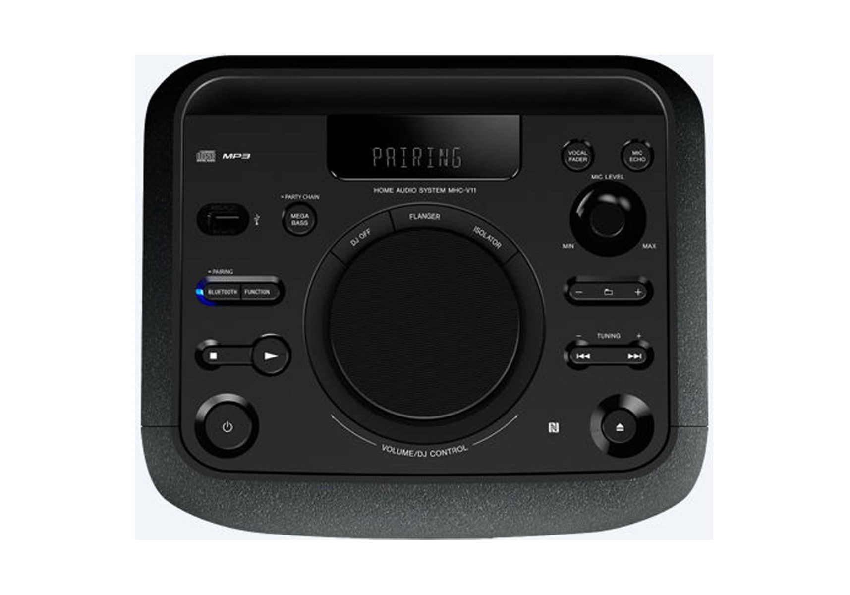 Le système MHCV11 dispose d'un son plus audacieux grâce au système pour la pression acoustique. Son pavillon replié et le port de sortie élargi augmentent la pression acoustique pour vous livrer une puissance de 470 W RMS et des basses profondes.