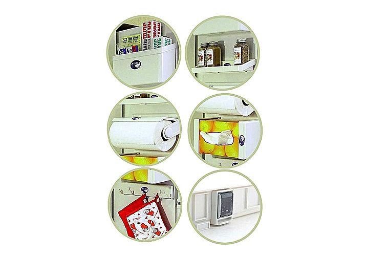 Solution polyvalente de support de stockage de refrigerateur Dote d'un porte-serviettes, d'un porte-huilier, d'un porte-burette, d'un cadre de boite et d'un porte-plateau lateral, le porte-bagages magnetique multifonction 5-en-1 est ideal pour ranger les essentiels de la cuisine. Ajoutant la commodite a vos tAches quotidiennes, ce rack de stockage dispose d'aimants puissants a l'arriere pour une solution solide. Utilisez ces supports pour ranger les boÓtes a assaisonnements, les feuilles d'aluminium, les essuie-tout, les gants de cuisine et autres articles de cuisine.