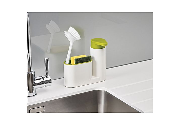 Cet ensemble de 2 pieces comprend une pompe a savon a pression facile a utiliser pour les savons et les lotions pour les mains, a cete d'un evier integre avec des compartiments separes pour ranger une brosse et une eponge. Eliminez l'encombrement de votre evier de cuisine avec cet ensemble de rangement et de pompe a savon pour evier polyvalent. Son design epure et epure exploite pleinement l'espace etroit situe derriere la plupart des eviers, sans compromettre les fonctionnalites pratiques. Il suffit de devisser le couvercle pour remplir la pompe a savon a pression facile avec votre savon liquide pour les mains. Toute l'unite est demontee pour faciliter le nettoyage.