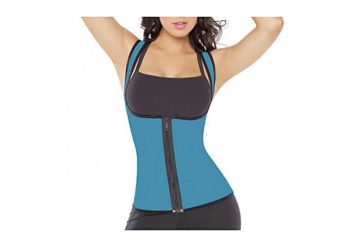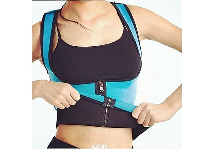 Gilet de Sudation Minceur Perte Poids au Ventre -Sauna pour Femme en Neoprene avec zipper-Bleu