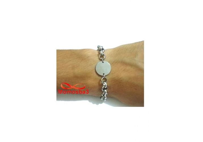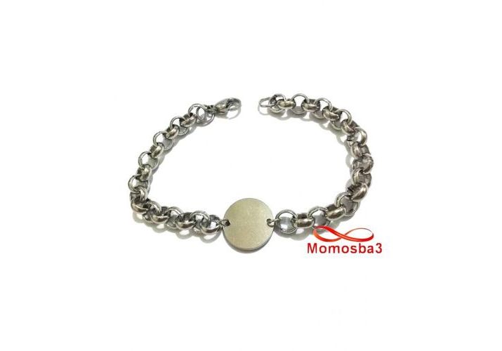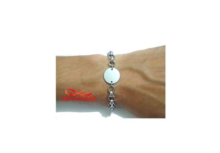 Gourmette En Acier Inoxydable Argenté Avec Piece Unisex Avec Sachet De Bijoux