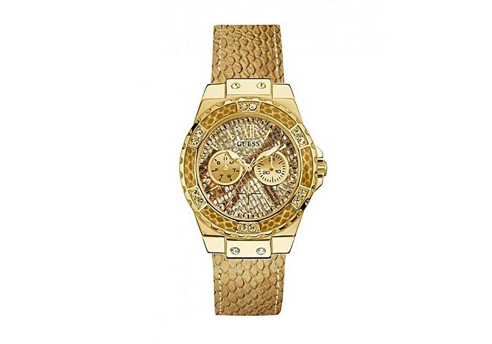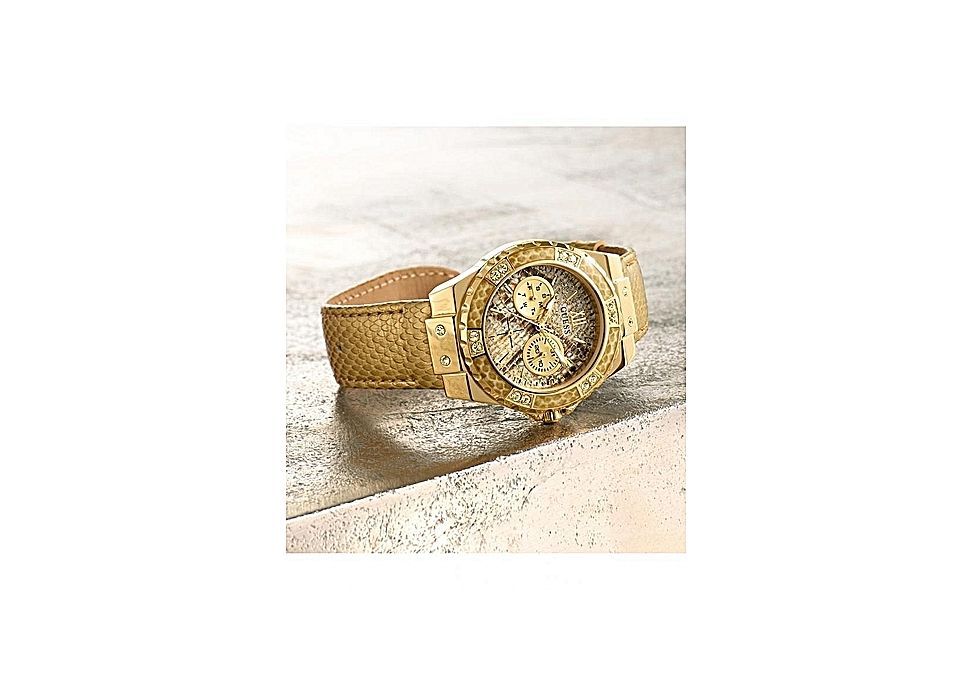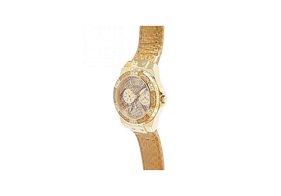 Sublimez votre poignet avec cette montre Limelight signée Guess. La montre, doté d'un bracelet en cuir doré effet reptile et d'un cadran pailleté et d'une lunette ornée de cristaux, allie à la perfection élégance et fonctionnalité.