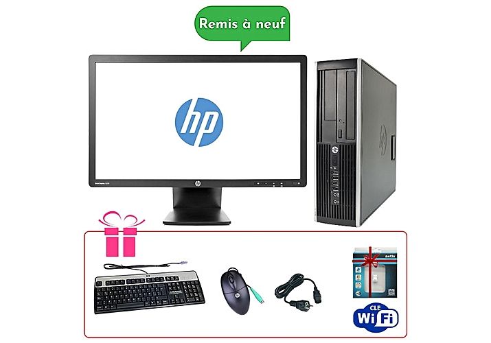 HP Compaq 6200 Pro SFF - Intel Core i5-2500 3.30 Ghz 4 Cores - 4Go DDR3 - 500Go SATA - Intel HD Graphics - Windows 7 Pro + Écran Elite Dispaly E231 - Remis à neuf + Clé Wifi Offert