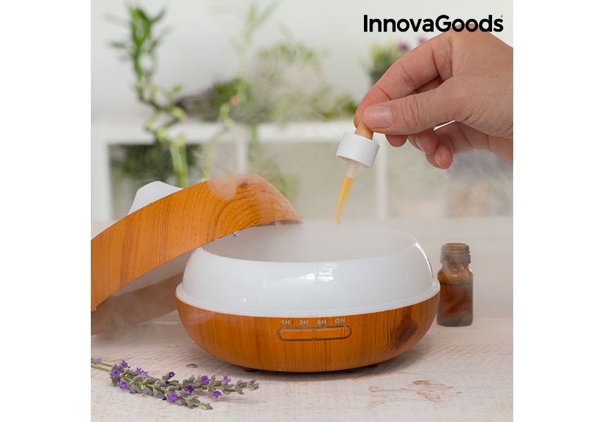 Vous pouvez désormais obteneir le nouvel humidificateur diffuseur d'arômes LED Wooden-Effect InnovaGoods Home Deco, un élément indispensable dans les atmosphères zen les plus agréables ! Son design innovant 2 en 1 de style zen, permet d'amlliorer la qualité de l'air, aidant à mieux respirer, et en créant une agréable atmosphère avec vos arômes préférés les plus relaxants.