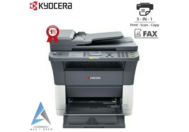 Imprimante KYOCERA Multifonction 4en1 Monochrome - Fonctions: Impression, Copie, Numérisation et Fax - Format Papier: A4 - Technologie d'impression: Laser - Vitesse d'impression (Noir& blanc): 20 ppm - Résolution: 1200 dpi - Mémoire: 64 Mo - Capacité d'entrée Papier: 2500 feuilles - connectivité:USB 2.0.