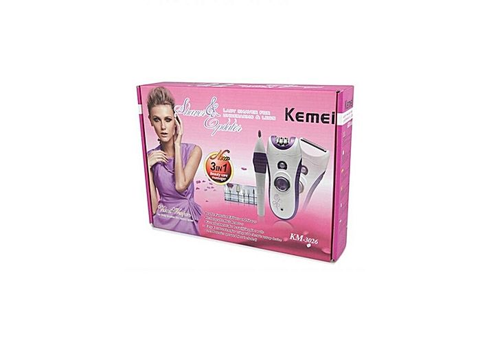 Kemei KM-3026 3 en 1 Femmes Électrique Épilateur Shaver Lady Shaver Femelle Corps Complet Soins De La Peau Épilation Manucure Et Nail Tool