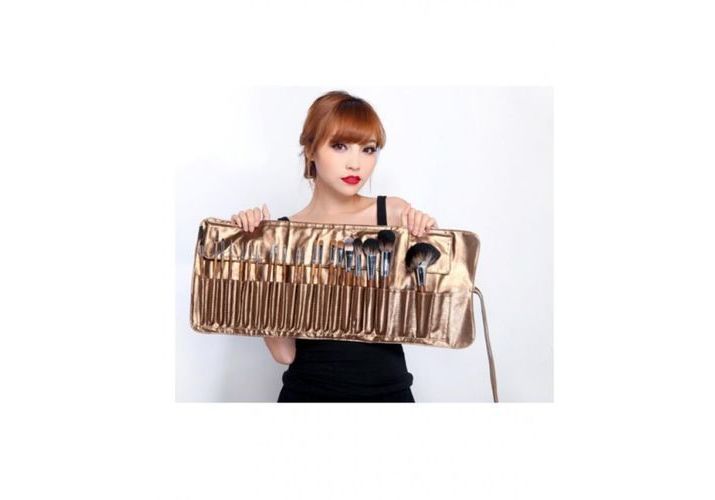 Kit Pro 24 Pinceaux pour maquillage + Pochette DORE