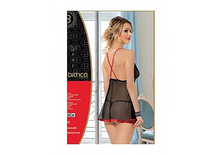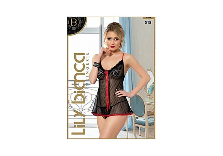 Laly bianca Chemise De Nuit + String - Noir- Rouge