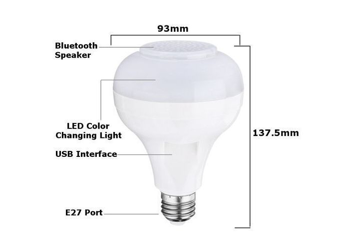 - 2 en 1 : Lampe et Enceinte Bluetooth- Diffusez de la musique depuis votre smartphone (ou tablette) via Bluetooth !- Plug and Play : Allumez l'ampoule, Activez le bluetooth et Connectez-vous.- Contrôlez le son, les plages musicales et l'intensité de la lumière via la télécommande (ou directement depuis votre mobile ou tablette)