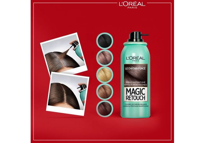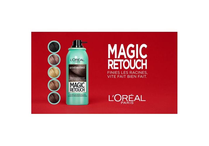 La repousse de vos racines vous gêne entre deux colorations ? Découvrez Magic Retouch, le 1er spray racines instantané effaceur de racines. Bien différent des kits racines traditionnels, il couvre temporairement les cheveux blancs et disparaît au shampooing. Le spray Magic Retouch est maintenant disponible en 10 nuances !