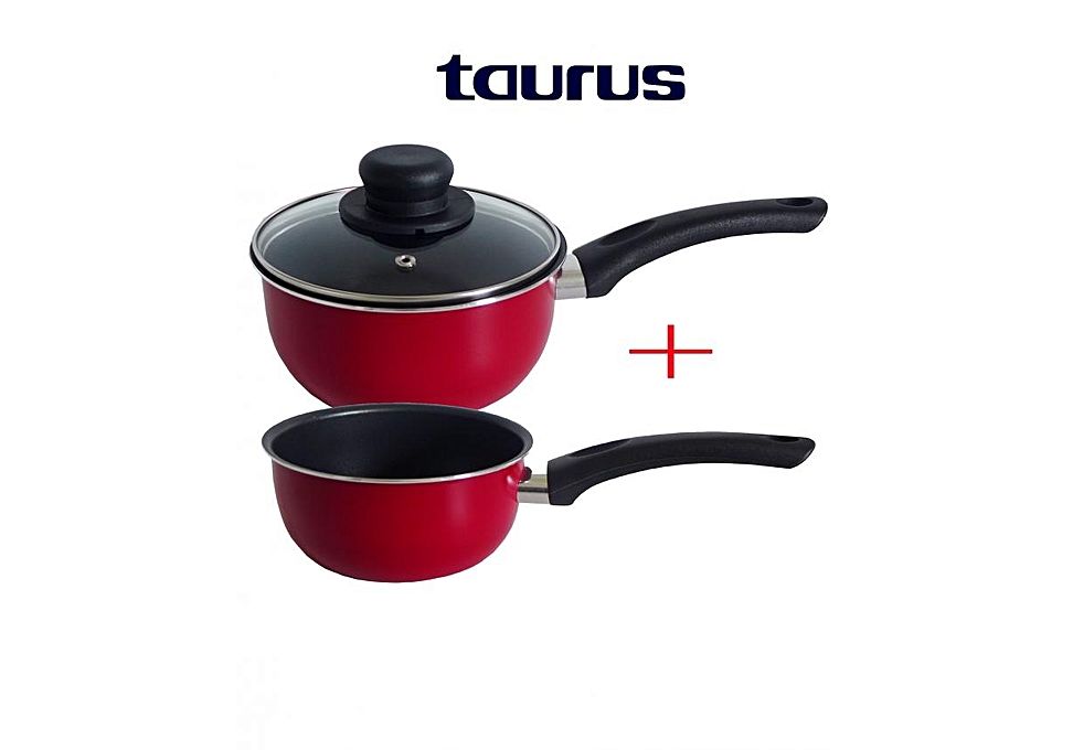 Lot 2 Casseroles+couvercle rouge VITAL Anti-Adhésive 16 cm+14 cm