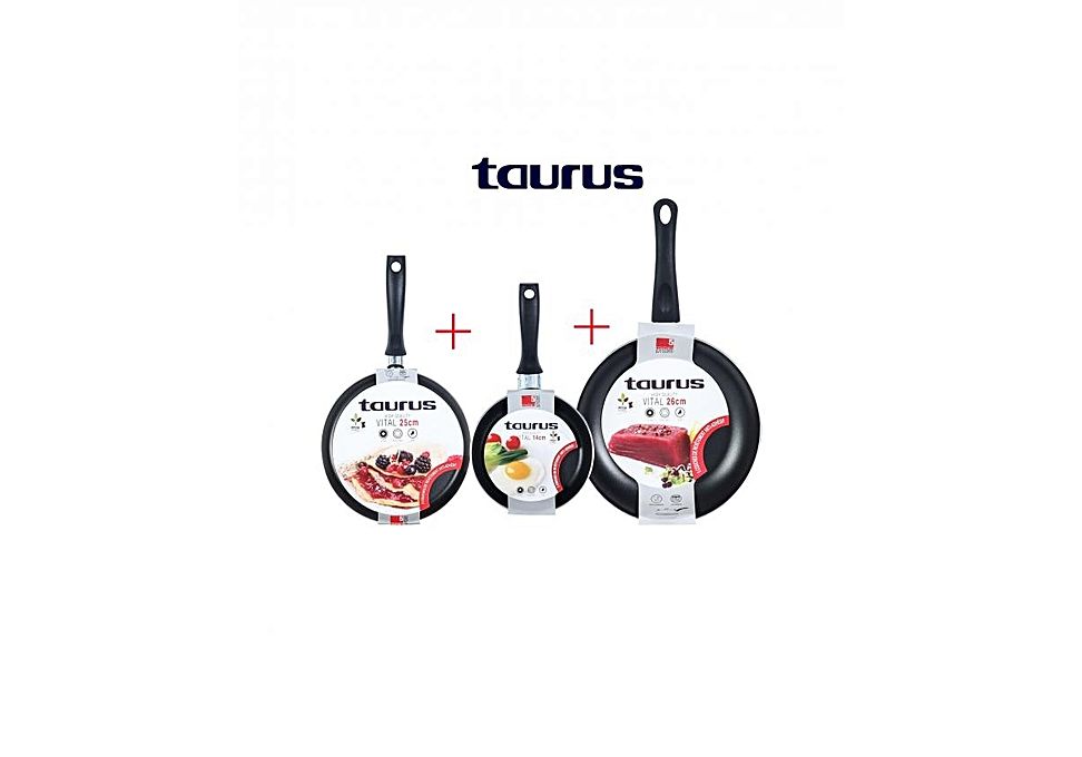 Lot 3 PCS poêles 26 cm poêles 14 cm + Crêpières 25cm rouge VITAL Anti-Adhésive