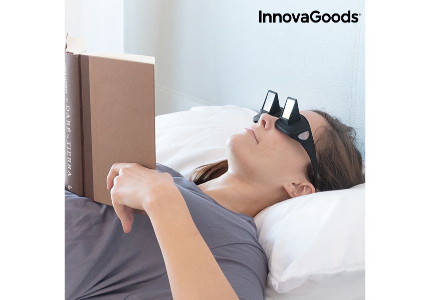 Nous vous présentons les lunettes originales à la mode, qui vous faciliteront la vie, les nouvelles lunettes prisme pour vision horizontale 90º InnovaGoods Gadget Cool ! Des lunettes confortables et pratiques qui évitent la fatigue visuelle et les douleurs au cou et au dos provoquées par les mauvaises postures, car elles permettent de regarder la télévision ou de lire un livre en étant en position horizontale, couché dans le lit ou sur le canapé, sans avoir à soulever ou à incliner la tête. De plus, elle sont la solution parfaite pour les malades en convalescence dans les lits d'hôpitaux ou de cliniques, pour les personnes à mobilté réduite ou avec des problèmes psychomoteurs.