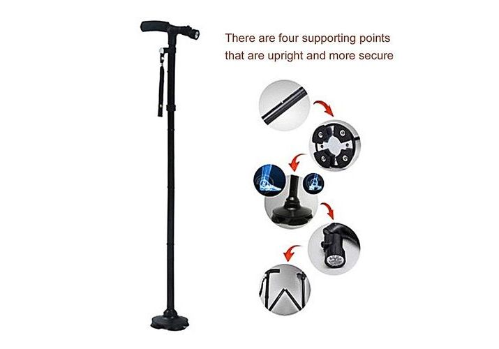 Magie Canne Pliante LED Lumière de Sécurité Bâton de Marche 4 Tête pivotant