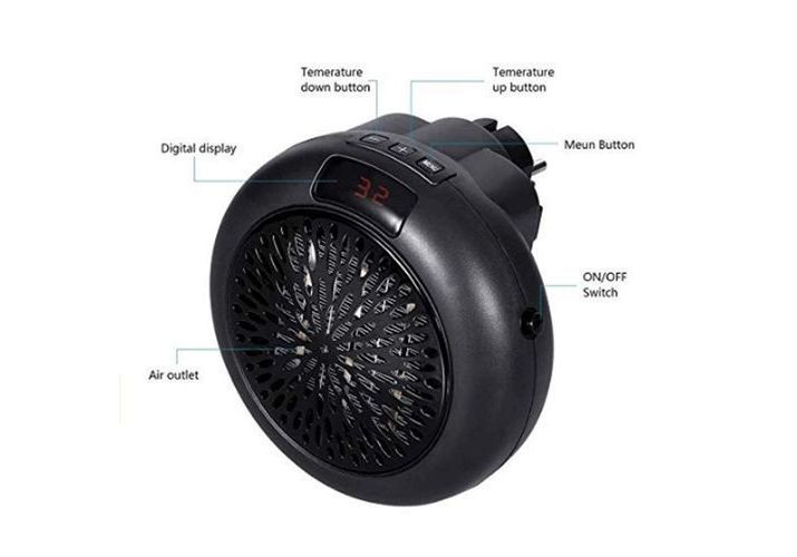 Il s’agit d’un mini-appareil de chauffage électrique qui s’insère dans n’importe quelle prise murale. Il est suffisamment compact pour être emporté n’importe où. Cet appareil compact rend les appareils de chauffage volumineux et encombrants une chose du passé. Il convient à toute prise murale avec une fiche à deux ou trois broches et peut pivoter à 180 degrés pour économiser de l'espace. Il est idéal pour n'importe quelle pièce de la maison, y compris un sous-sol bien ventilé ou une chambre froide, pour une utilisation dans un garage ou un atelier.