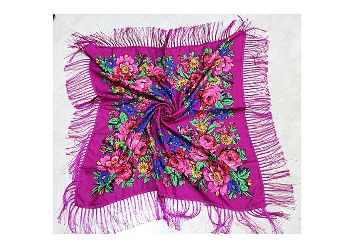 - Foulard russe coloris rose 100% coton