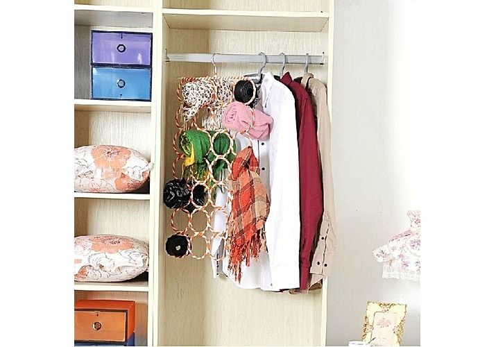 Pack se compose de Cintre Multifonctionnel Pliable pour Foulards & Cravates et Sac ROLL-N-GO pour stocker produits cosmetiques et bijoux- Finis les foulards et echarpes et cravates empiles et ecrases dans le fond d'un tiroir! Il ne prend pas plus de place qu'un cintre classique et en un coup d'oeil vous pouvez trouver le foulard ou cravate a assortir a vos tenues!