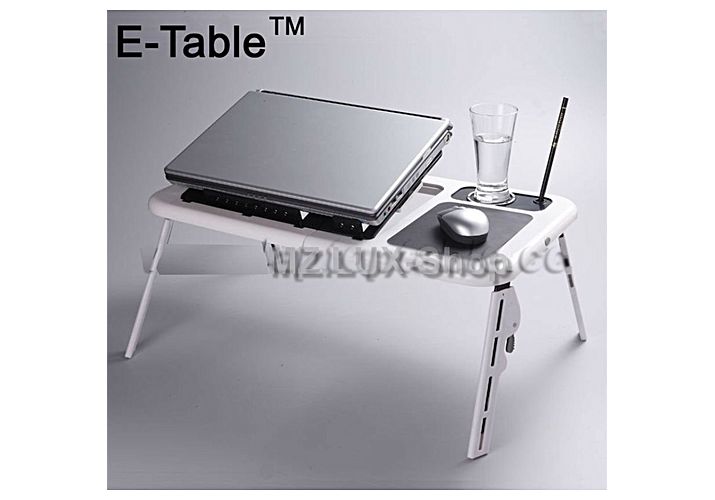 Ajoutez un attrait fonctionnel a votre espace de travail grâce a la table pour ordinateur portable. Il est construit en plastique ce qui le rend robuste et durable. La hauteur est reglable, ce qui vous permet de le personnaliser a votre taille preferee. Il comprend des places qui peuvent etre utilisees pour ranger de plus petits objets tels que des stylos, des blocs-notes ou la souris et meme un emplacement pour verre d'eau. Il a egalement un ventilateur de refroidissement qui aidera a garder votre ordinateur portable de surchauffer.